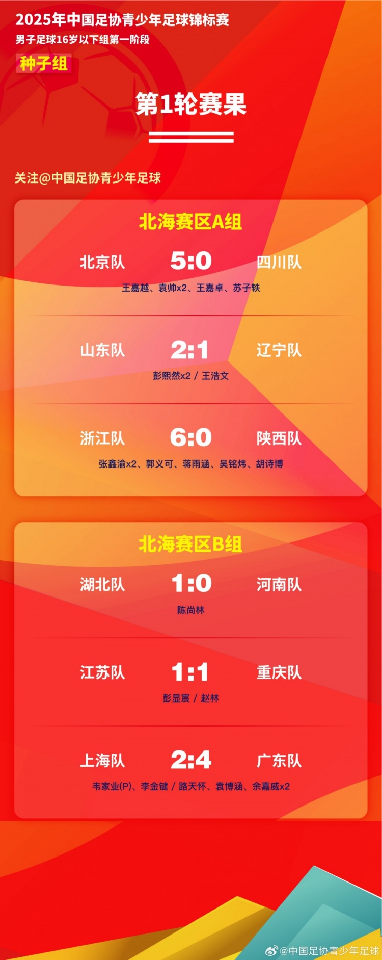 2026年青少年篮球联赛:男足16岁以下组第一阶段第1轮赛果