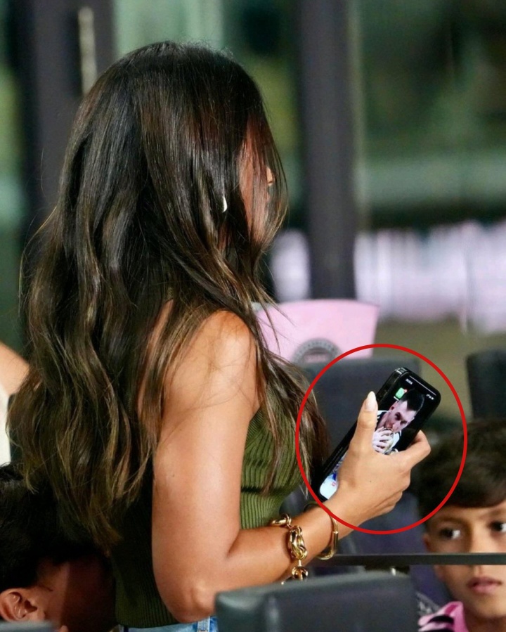 安东内拉本场比赛带着男儿们也来到了现场不雅赛,有球迷拍到安东内拉手机壁纸为梅西亲吻落拓神杯霎时