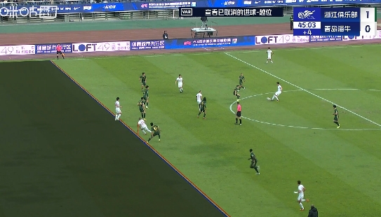 11月22日讯 海牛vs浙江上半场补时阶段,韦林顿单刀破门,边裁认定越位,但VAR改判不越位!