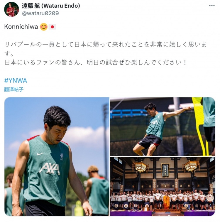 7月29日讯 利物浦中场远藤航更新社媒动态,说念到随利物浦回到日本的感受。