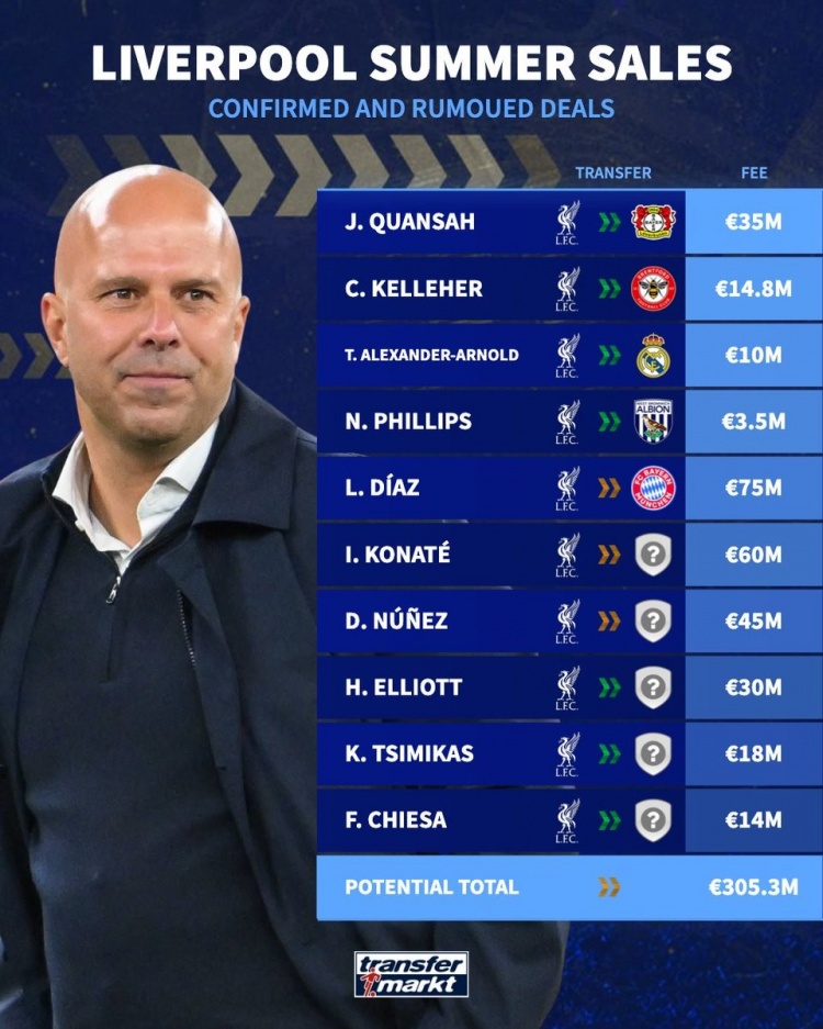 德转测度利物浦今夏卖东谈主:总转会费3.053亿欧元