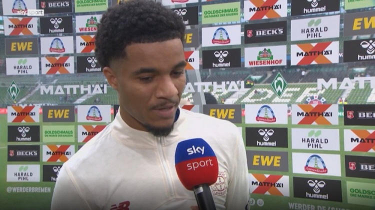8月31日讯 德甲第二轮比赛,蒂尔曼破门,勒沃库森客场3-3战平不莱梅,蒂尔曼赛后给与了媒体的采访。
