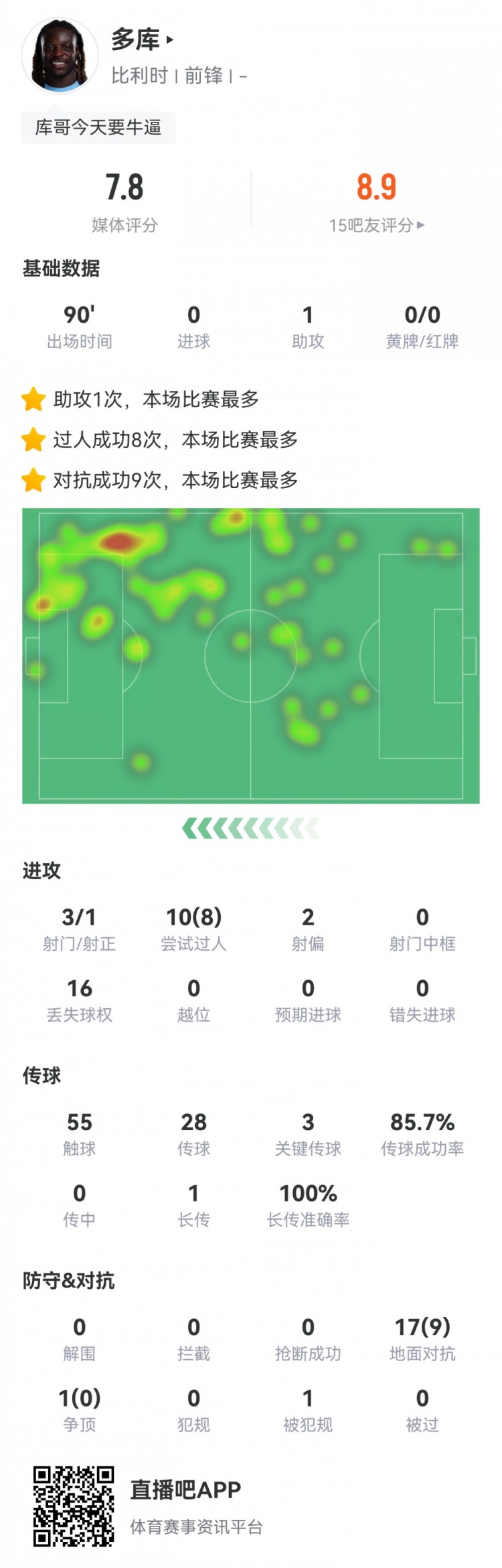 据媒体数据统计,多库在本次寰宇杯欧洲区预选赛中完成34次冲破,比其他任何球员至少多出15次。