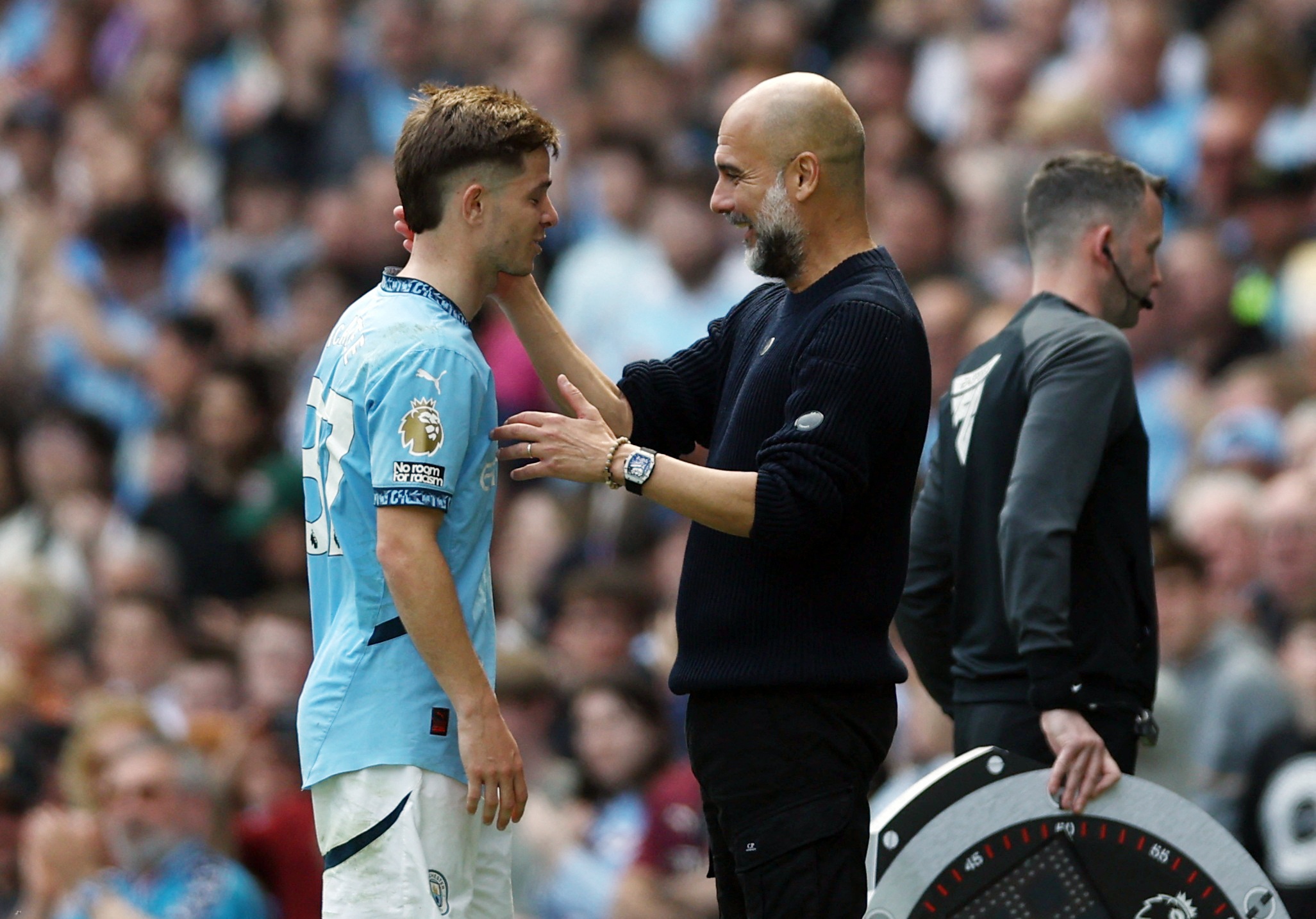 麦卡蒂的卓绝如斯之大,他的成年队首秀最终如约而至。瓜迪奥拉很鉴赏他,这极少他畸形感恩:"这是一种信心上的擢升,是庞大的颂赞,我很感恩他对我的信任和信心。对我来说,他是天下上最好的熟悉,一个你每天皆能从他身上学到东西的东说念主。他会和我指摘怎样干涉禁区,怎样试图得到更好的要紧数据。"