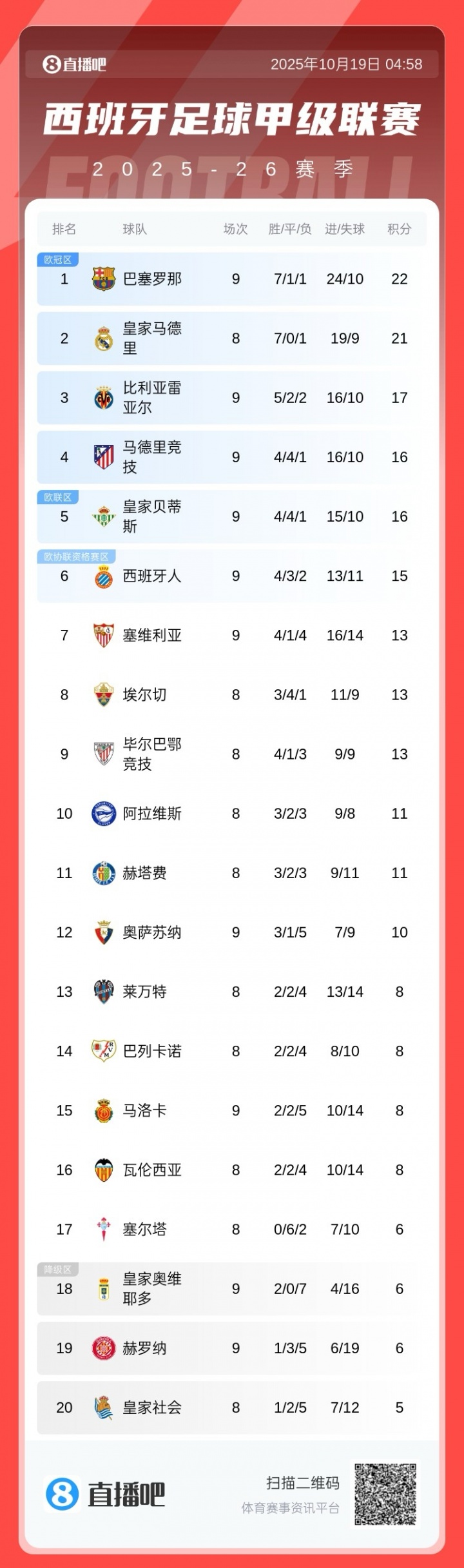 终于挤进前4!西甲积分榜:马竞8轮不败升第4,巴萨1分上风暂登顶