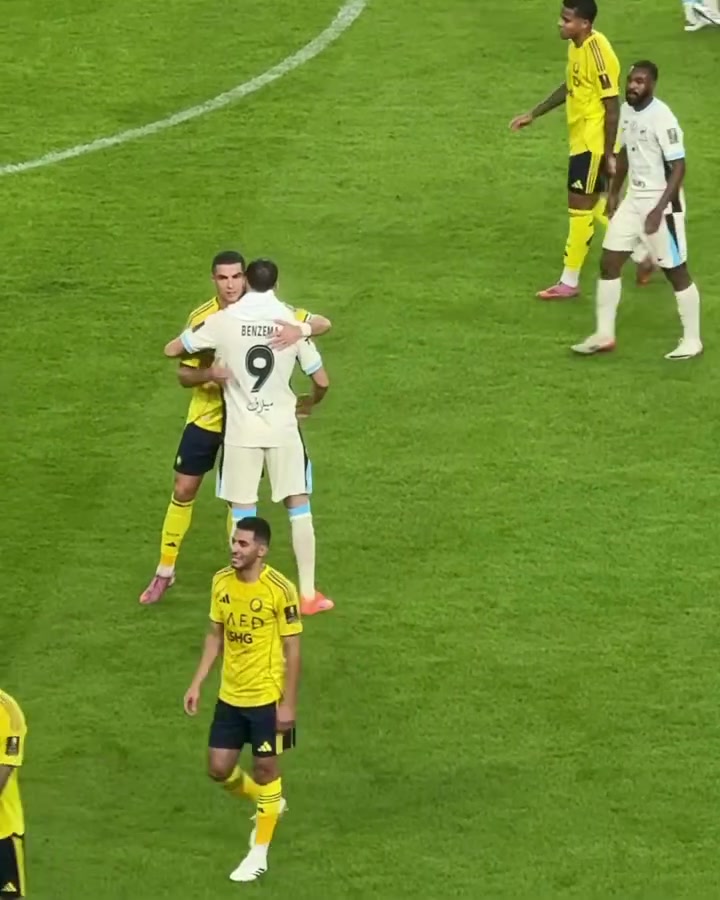 赛后C罗与本泽马拥抱问候,两东说念主曾在皇马并肩斗殴342场比赛。