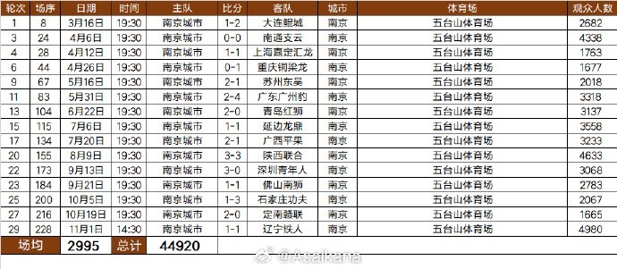 2025中甲联赛南京城市队现场不雅世东说念主数统计:共计44920东说念主次,场均2995东说念主。