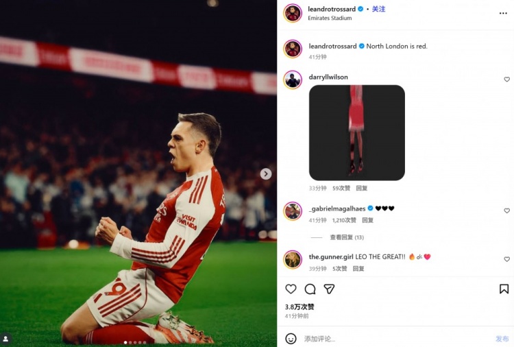 他也在赛后通过社媒晒出我方的滑跪庆祝照,并配文:“北伦敦是红色的!”