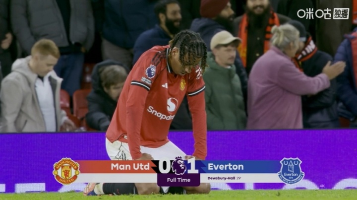 11月25日讯 英超第12轮,曼联主场多打一东谈主却0-1不敌埃弗顿。