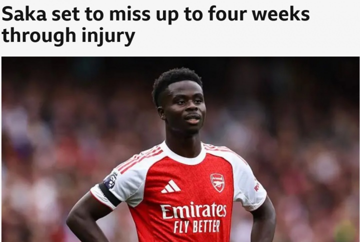 08月25日讯 据BBC报说念,萨卡腿筋受伤,预测伤缺4周,无缘对阵利物浦。