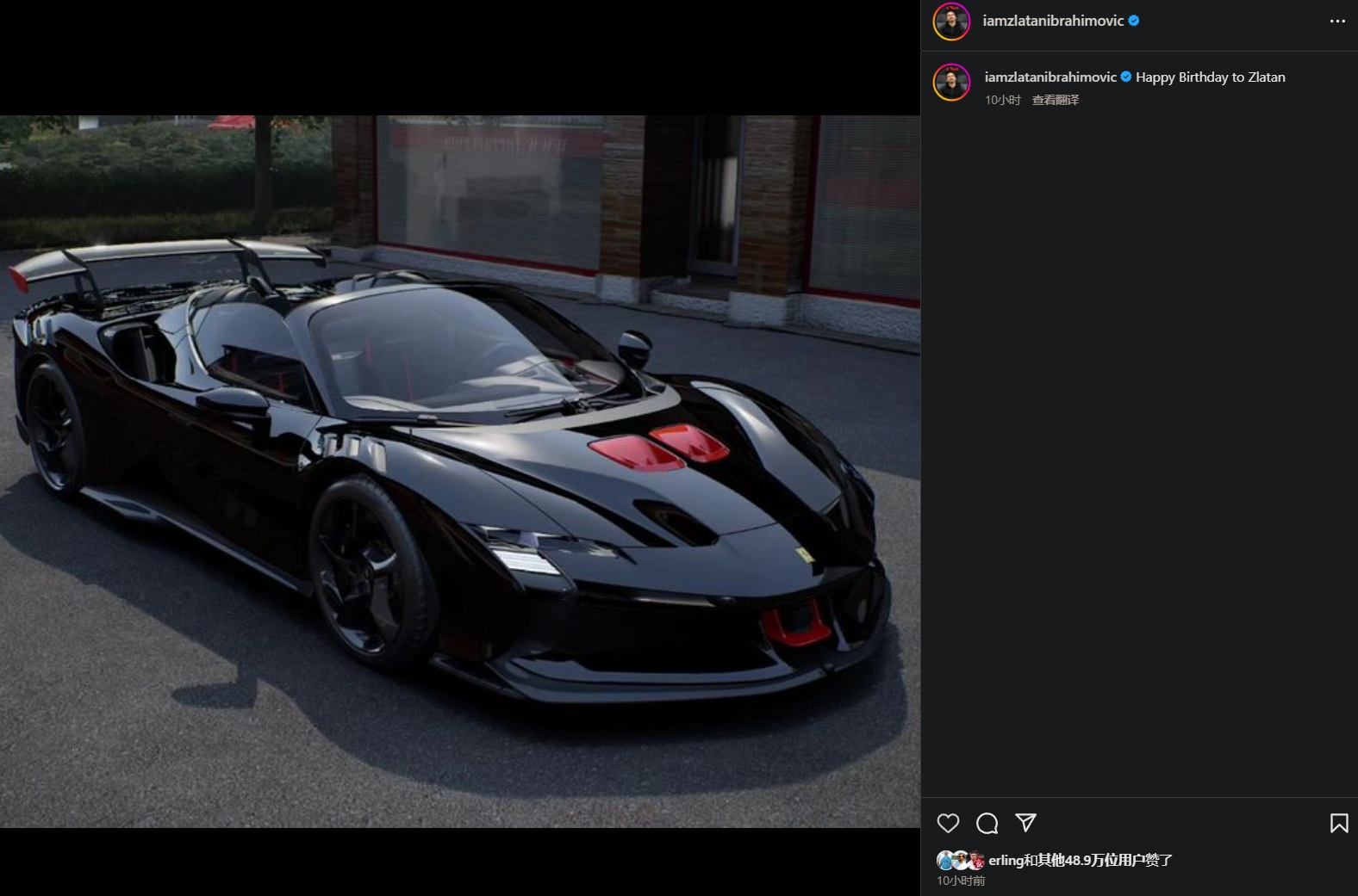 依旧法拉利!伊布社媒再晒爱车为我方庆生:祝兹拉坦生辰景观