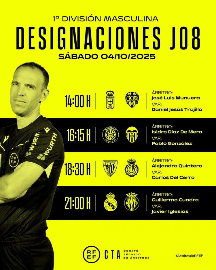10月3日讯 西甲官方公布了10月4日比赛的裁判安排,夸德拉公法皇马vs比利亚雷亚尔。