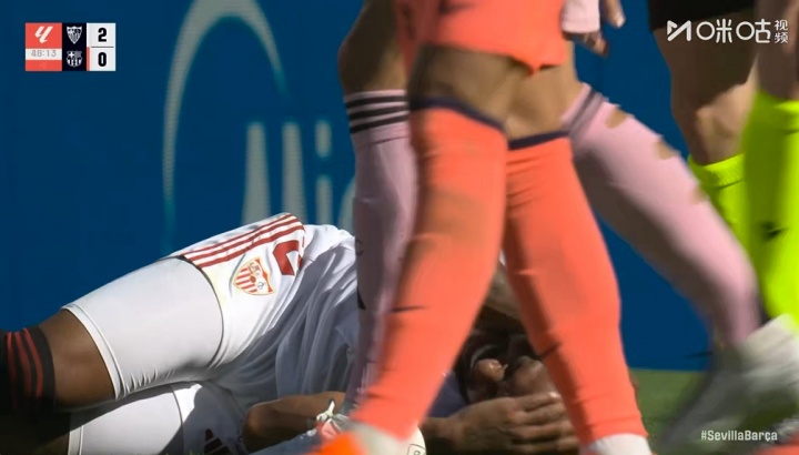 洪流冲了龙王庙!塞维门将出击打翻自家中卫,后者暂去场边休息