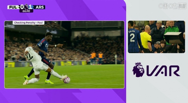 10月19日讯 阿森纳vs富勒姆第65分钟,萨卡造点!凯文送点,这球裁判看VAR后判定莫得点球!