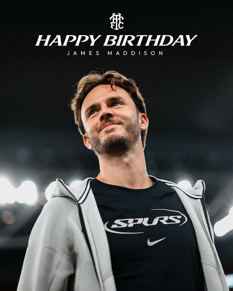 热刺官方社媒晒出麦迪逊的寿辰海报,配文:“祝麦迪逊寿辰快意!”