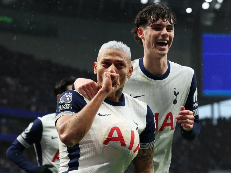 11月24日讯 英超第12轮的北伦敦德比,热刺在酋长球场挑战阿森纳。本场比赛,在球队0-3落伍的情况下,里沙利松为热刺打进1球,并且是一粒惊天吊射。