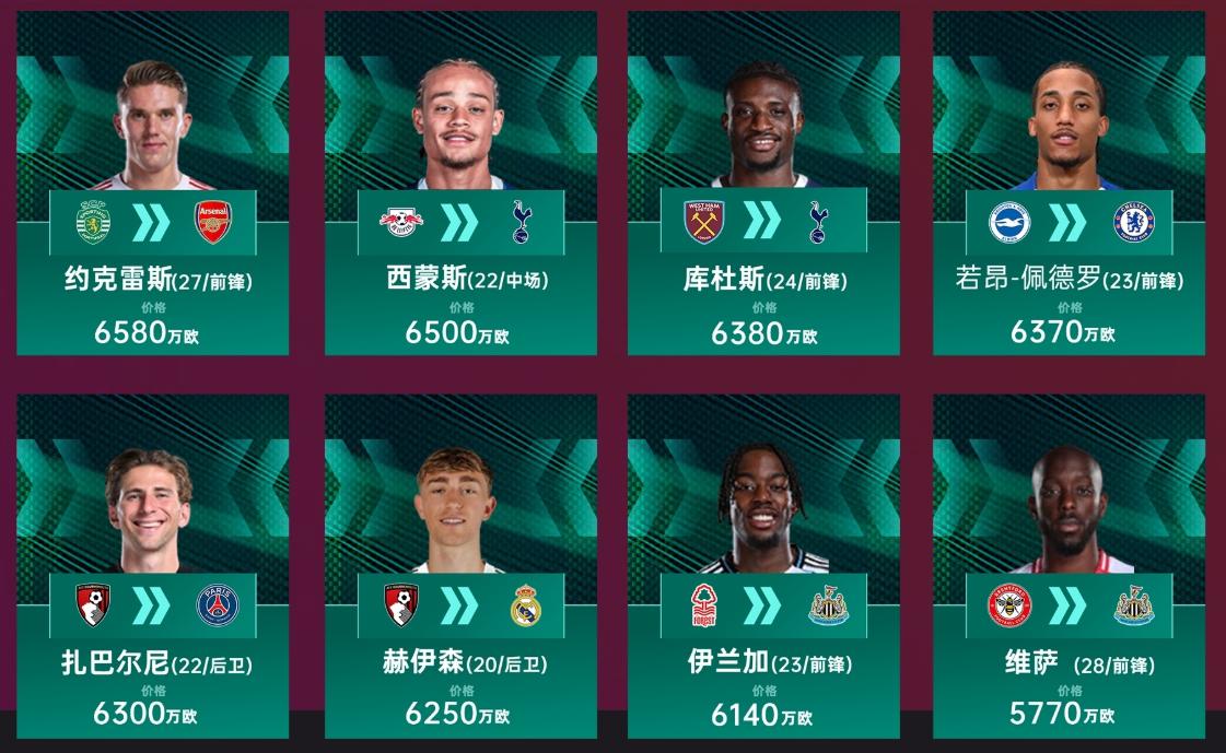 纽卡2.88亿排第四。在卖出了伊萨克基础上,纽卡引入了沃尔特马德、维萨等选手,东说念主数上倒是够了。只不外价钱略贵到底值不值要再看的。