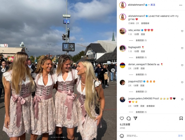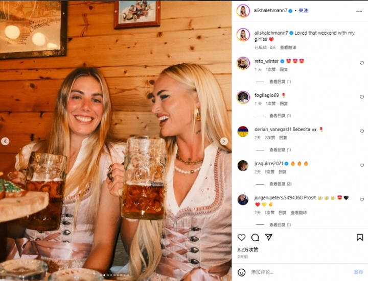 10月03日讯 据《太阳报》的报谈,前维拉/尤文女足球员,现遵循于科莫女足的艾丽莎-莱曼在与队友一谈干预慕尼黑啤酒节时,在社媒发布的相片中玄机地线路了我方的独身情状。