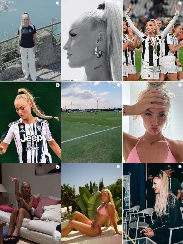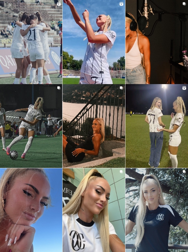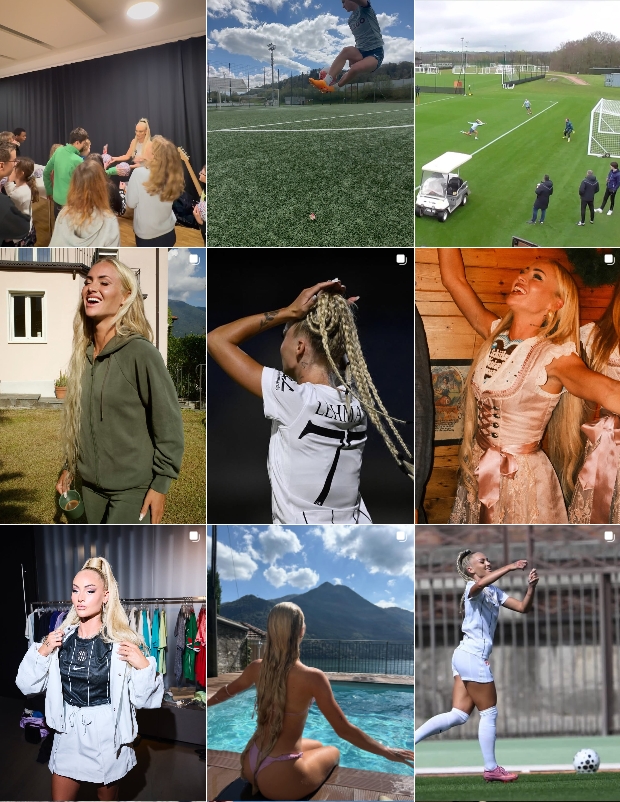 这位被部分媒体称为“天下上最美艳的足球通顺员”的瑞士球星很少离开公众视野。她的个东谈主社媒有1600万粉丝,并经常展示我方在足球以外的迷东谈主生计容貌。