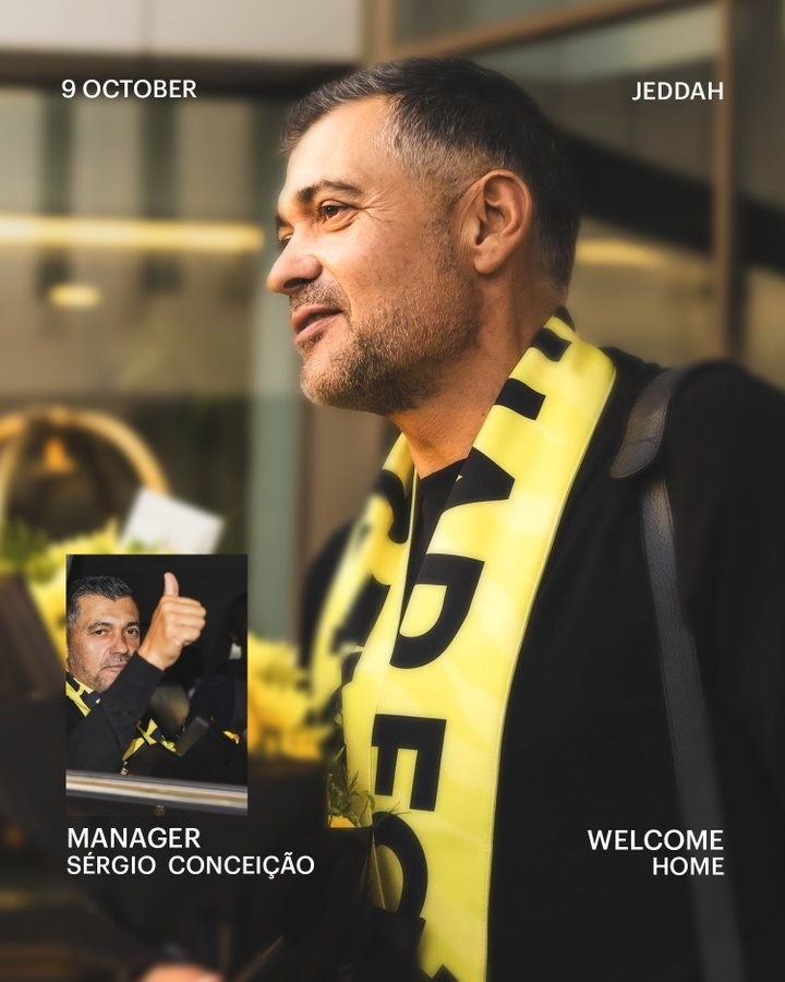 10月9日讯 吉达集合官推晒图,新帅孔塞桑还是抵达。