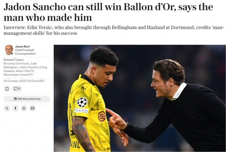 10月24日讯 英媒《逐日电讯报》采访了前多特主帅泰尔王人奇,聊到了多名他曾同事过的高身价球员。其中关于桑乔,泰尔王人奇默示“他也还有获得金球奖的契机”。