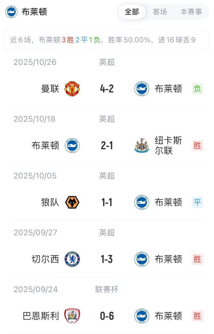 布莱顿首发:23-斯蒂尔、6-范赫克、21-博斯卡利、24-卡迪奥卢、29-德屈佩、42-库博拉、17-巴莱巴、25-迭戈·戈麦斯、9-王人马斯、10-鲁特尔、19-科斯托拉斯、