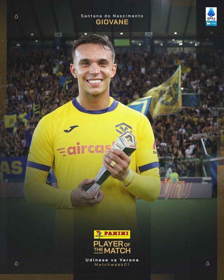 吉奥瓦尼今夏离开科林蒂安,免签加盟维罗纳,本赛季出战12场比赛,打进1球,助攻3次,德回身价400万欧元。