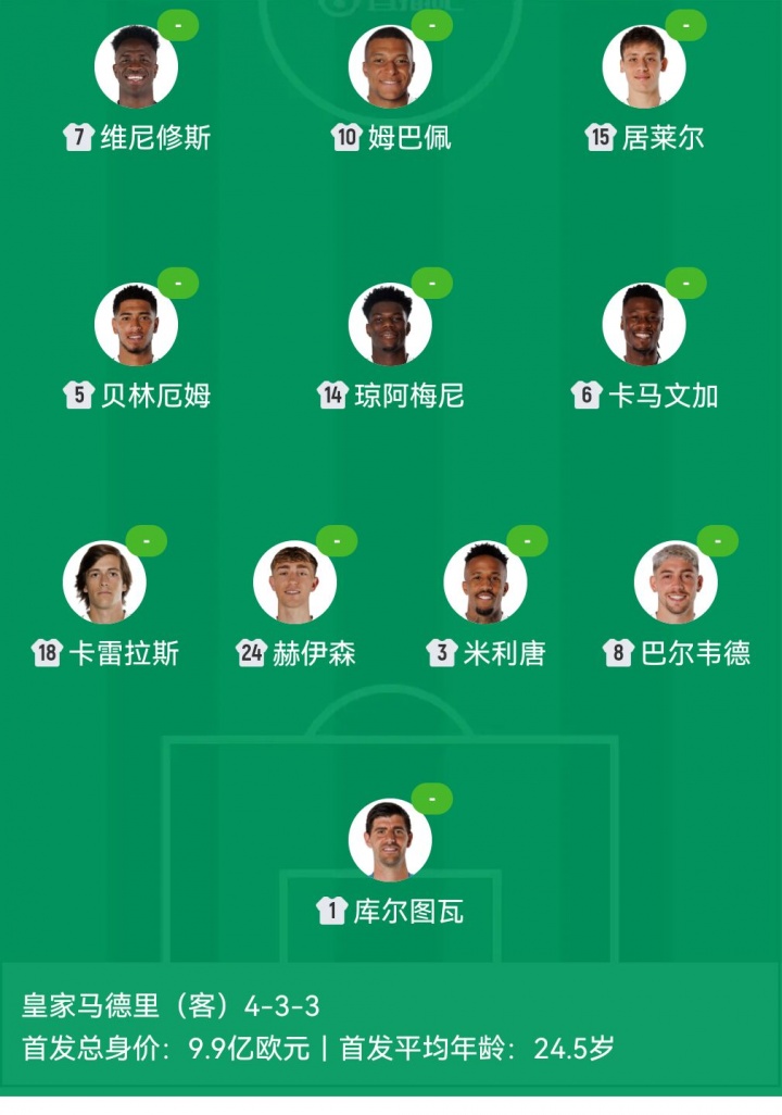 欧冠第4轮,皇马客战利物浦首发11东谈主