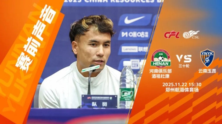 北京本领2025年11月22日15点30分,郑州帆海涌现场,云南玉昆将与河南俱乐部酒祖杜康进行中超联赛第三十轮比赛。