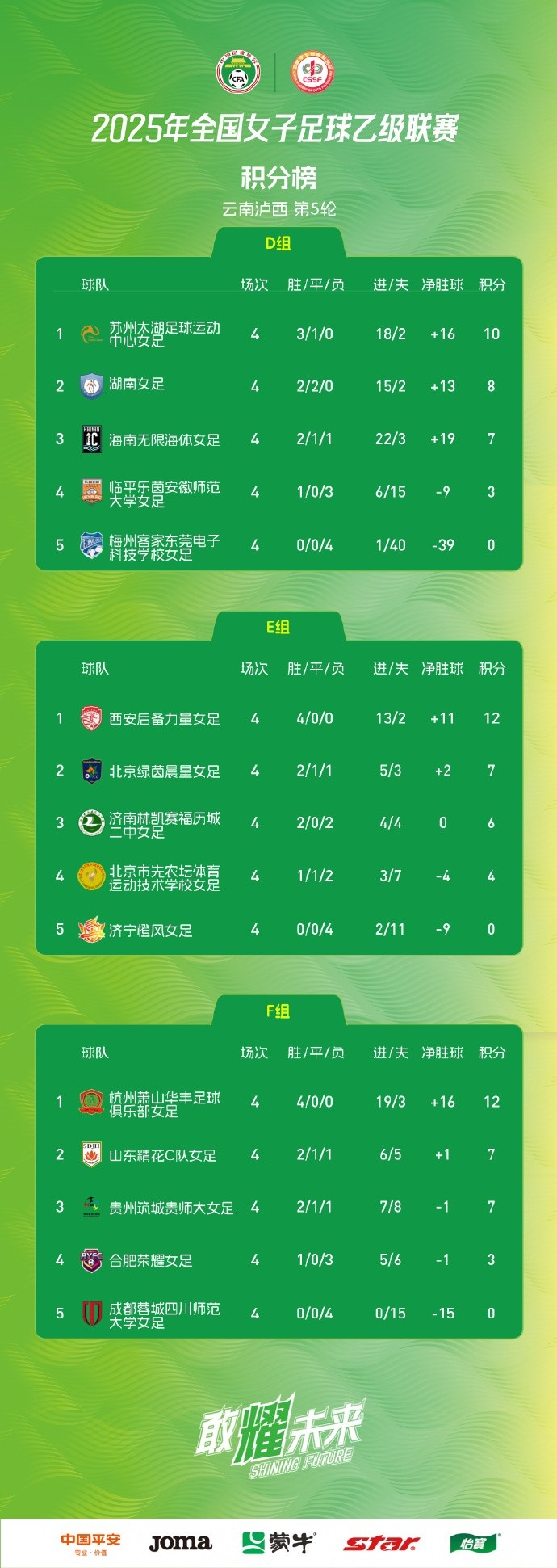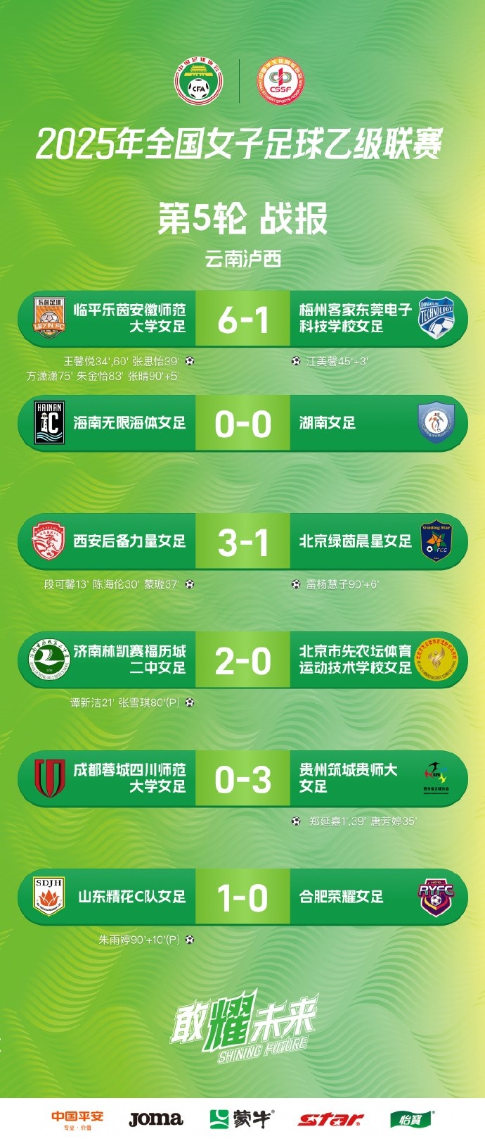 2025寰宇女子足球乙级联赛 第5轮 战报、积分榜、弓手榜